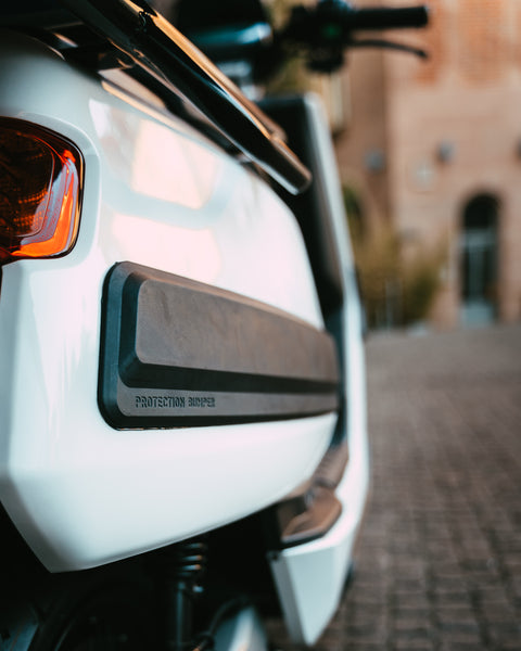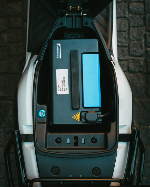 Der Roller ist serienmäßig mit Scheibenbremsen vorne und hinten, regenerativem Bremssystem, Hydraulikdämpfern vorne und hinten, sowie Cloud-Konnektivität (GPS, Diebstahlwarnung, Flottenmanagement) ausgestattet.
